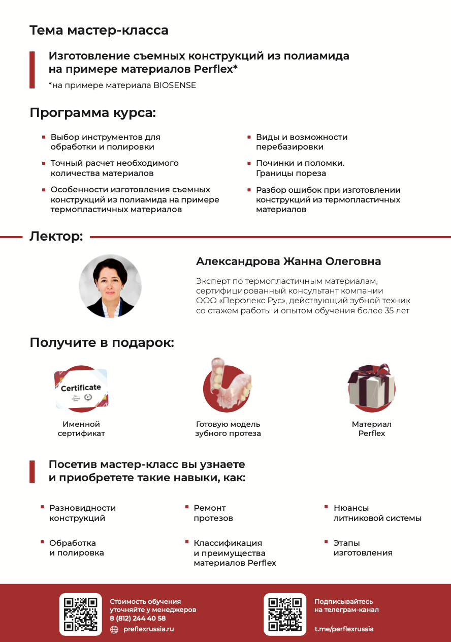 - ПРИОБРЕТЕНИЕ ЗНАНИЙ о свойствах и особенностях использования PERFLEX для изготовления протезов