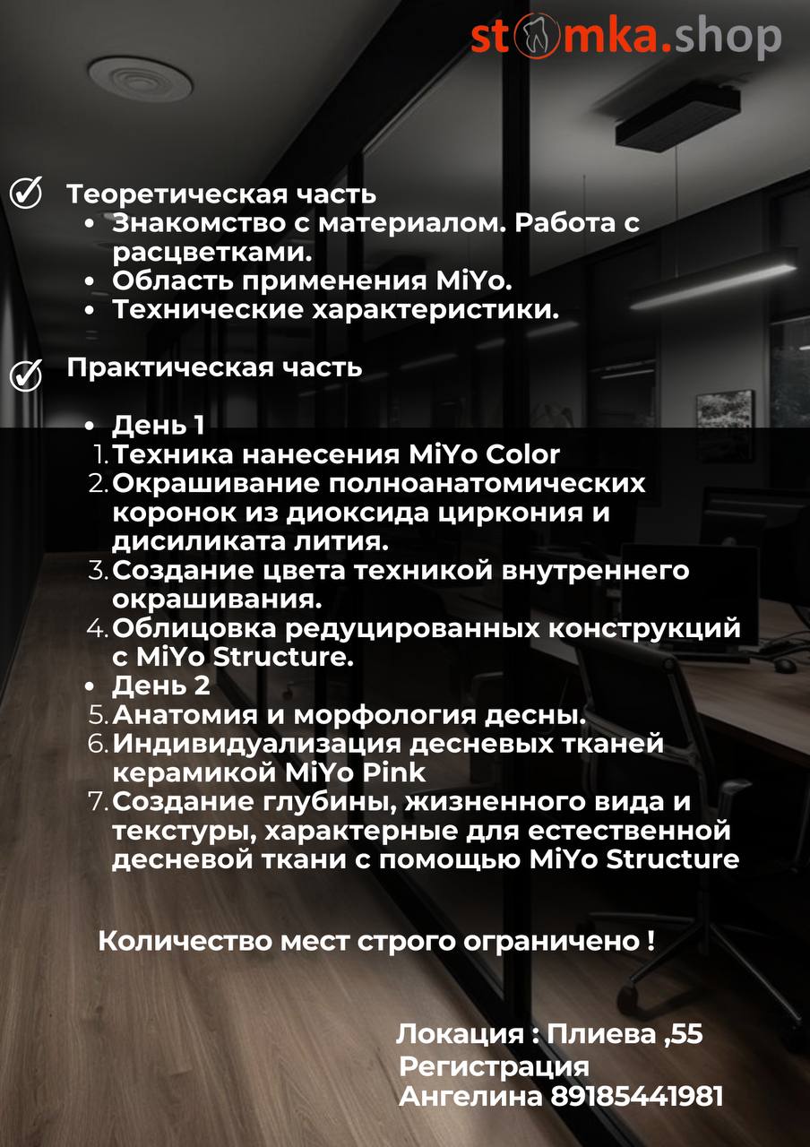 1. Техника нанесения MiYo Color2. Окрашивание полноанатомических коронок из диоксида циркония и дисиликата лития.