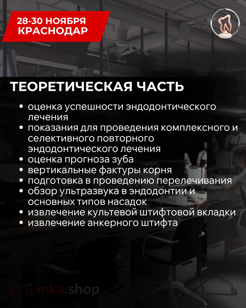 На курсе мы подробно разберем все нюансы повторного эндодонтического лечения, обсудим наиболее показательные клинические случаи и рассмотрим видео по каждой клинической проблеме и ошибке.