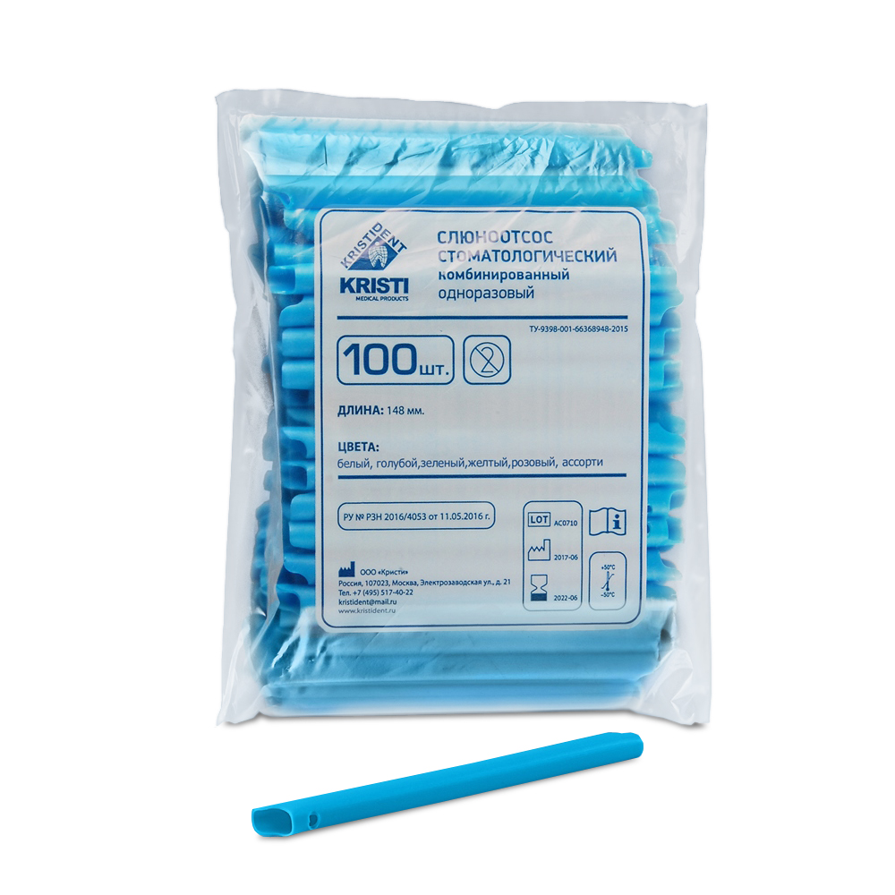 Наконечники для пылесоса стоматологические одноразовые голубые, 100 шт. KRISTIDENT