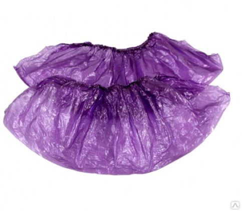 Бахилы п/э на резинках Экстра+ фиолетовые 3,6г. 50пар/уп. Донская Бахильная Компания