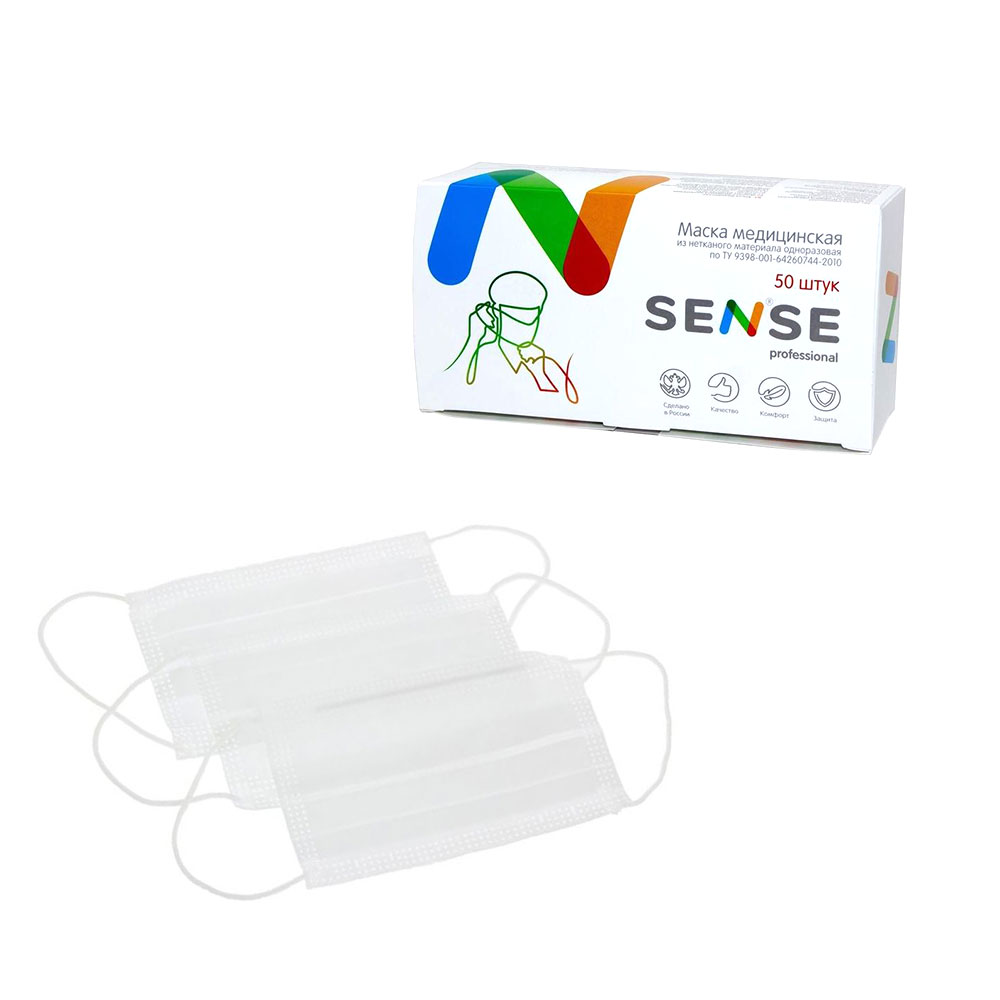 Маски (в картонной коробке) 50шт. Белые Sense