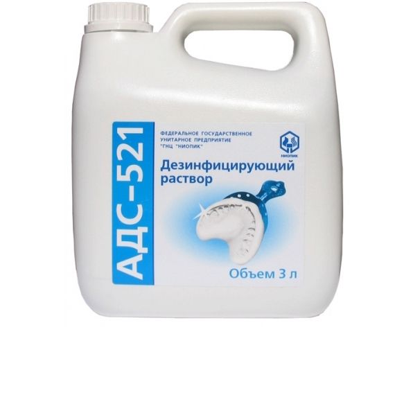 Дезинфицирующее средство АДС-521 предназначено для дезинфекции стоматологических оттисков из альгинатных, силиконовых материалов, зубопротезных заготовок из разных материалов, коррозионностойких артикулятов и слепочных ложек в лечебно-проффилактических учреждениях.