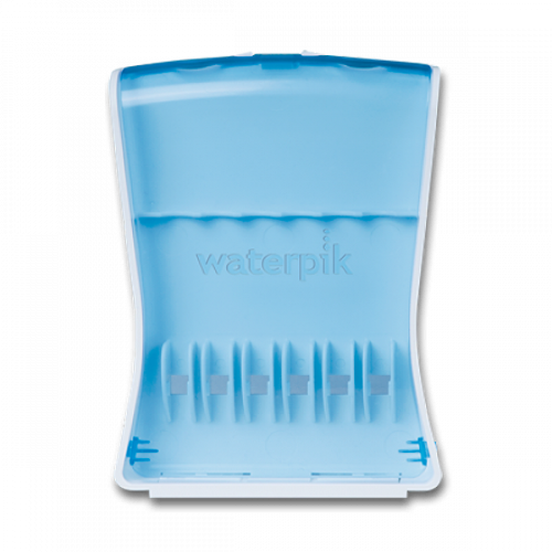Футляр для насадок ирригаторов Waterpik (TS-105E). Удобный и прочный. Имеет прозрачную крышку и выдвижную ножку. Вмещает до 6 насадок любых видов: от стандартных до ортодонтических.
