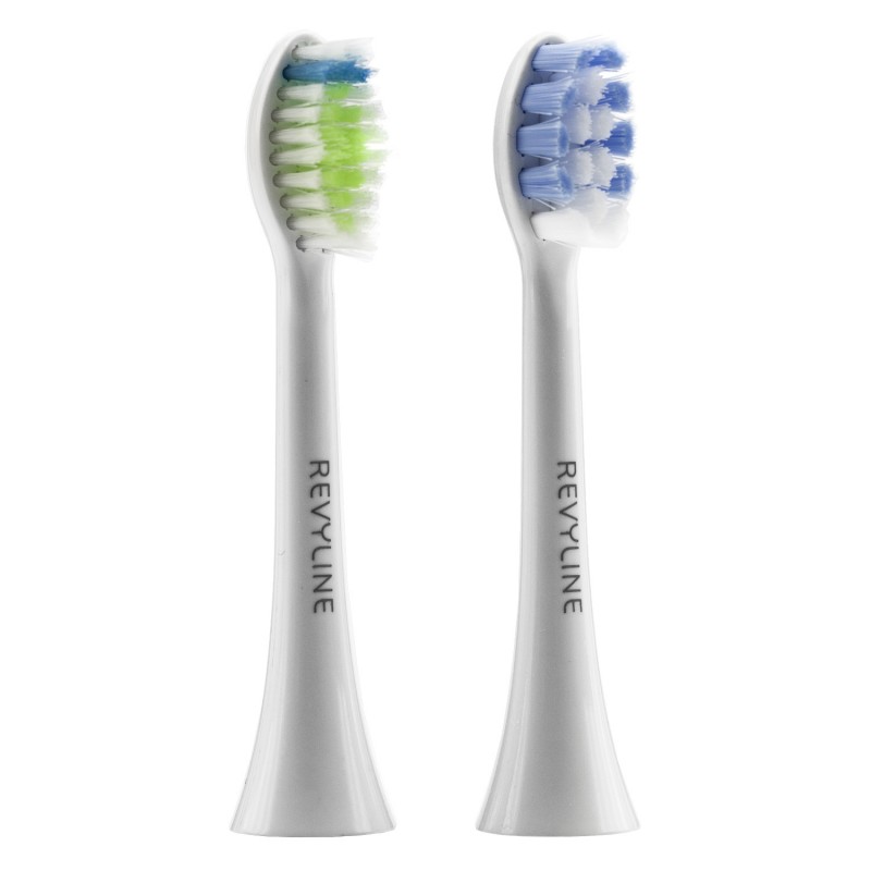 Стандартные сменные насадки для звуковой зубной щётки Revyline RL 040. Стоматологи рекомендуют менять их каждые три месяца, поэтому лучше покупать запасной комплект сразу при покупке щётки. Это избавит вас в будущем от лишних хлопот.