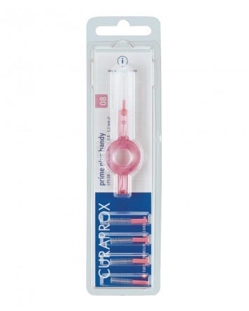 Набор ершиков с держателем для первичной профилактики гингивита, пародонтита, кариеса на боковых поверхностях зубов. Мягкая и густая щетина. Стержень ершика выполнен из запатентованной хирургической стали CURAL для долговечности и надежности, придает ершикам дополнительную прочность и делает их гипоаллергенными, так как сплав не содержит никель. Не повреждает десневой сосочек и обеспечивает полный контроль зубного налета. Высокое качество ершиков позволяет быстро и тщательно очистить межзубный промежуток за один раз. Производство Швейцария. Набор для ежедневного гигиенического ухода за межзубными промежутками Prime Set PLUS: 5 ершиков CPS 08 с держателем UHS 451