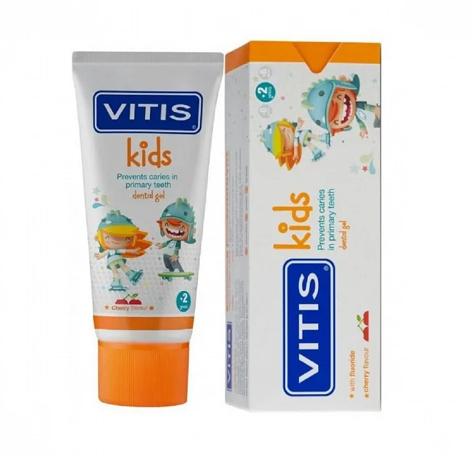 Зубная паста-гель Vitis KIDS 2+ детская. Неабразивная, со фтором 1000ppm, вишня DENTAID