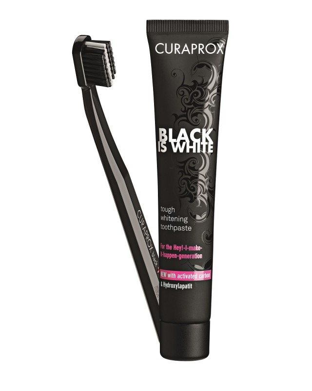 Отбеливающая зубная паста Black Is White, 90 мл + CS Ultra Soft 5460 черная, Curaprox