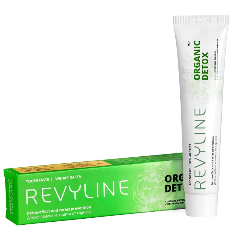 Зубная паста Revyline Organic Detox c натуральным гвоздичным маслом обеспечивает детокс-эффект и надежную защиту от кариеса.
