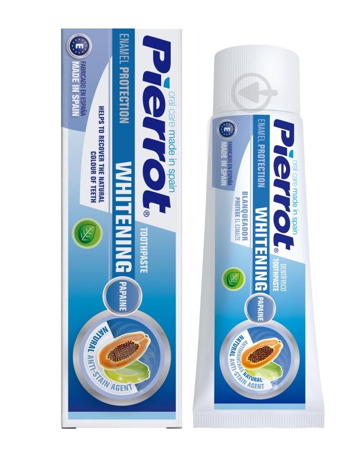Зубная паста Pierrot WHITENING – это идеальное решение для тех, кто заботится не только о здоровье зубов и десен, но и о белизне эмали. Ее компонент PAPAINE отбеливает зубы без повреждения эмали и может использоваться ежедневно. PAPAINE: это фермент из дерева папайи с заживляющими, отбеливающими, и анти-окрашивающими свойствами. Паста не содержит жестких абразивных веществ.