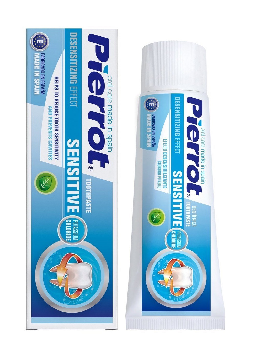 Зубная паста Pierrot Sensitive рекомендуется людям с чувствительными зубами, которые сильно реагируют на холодное и горячее. Несмотря на низкую абразивность, средство тщательно очищает зубы, одновременно успокаивая десна. Содержание в пасте Pierrot Sensitive аллантоина – анестетика, обладающим противовоспалительным действием, способствует восстановлению десен. Второй важный компонент пасты – фторид калия уменьшает чувствительность зубов. Комплексное воздействие этих активных веществ способствует быстрому восстановлению десен, укреплению эмали и предотвращают болезненную чувствительность зубов. Паста очищает от зубного налета, препятствует размножению бактерий и надолго освежает дыхани.