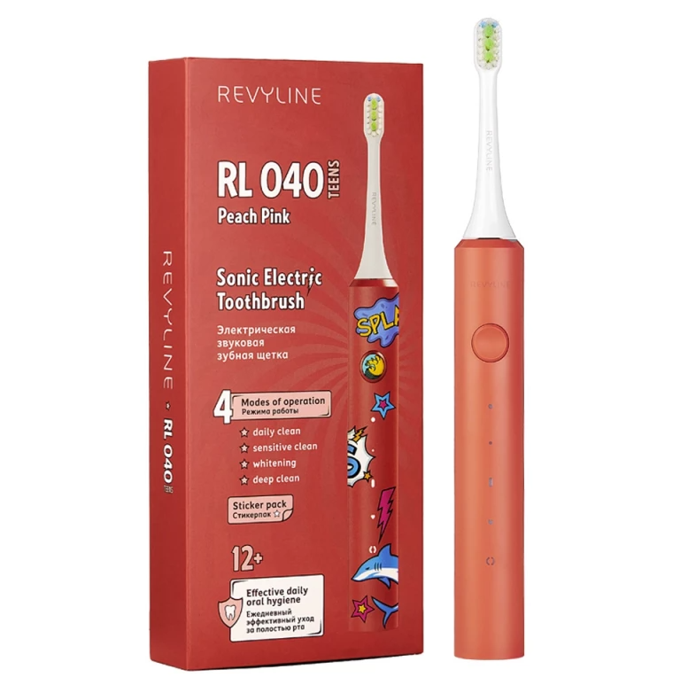 Электрическая звуковая зубная щетка Revyline RL 040 создана с учетом возрастных особенностей – пользоваться ею можно, начиная с 12 лет.