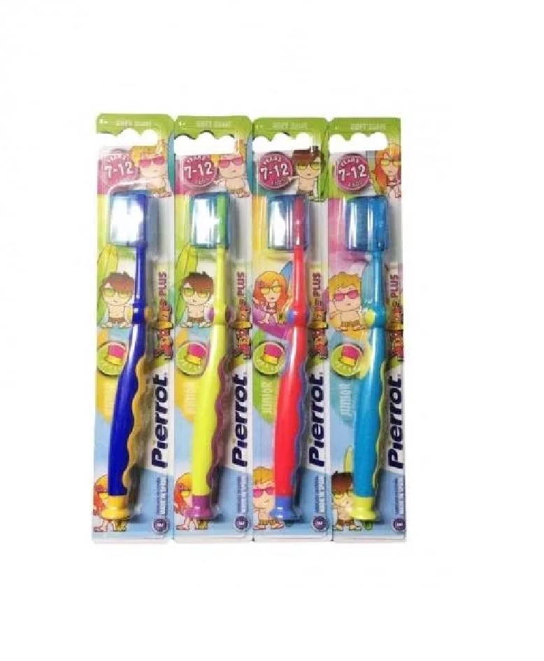 Зубная щетка для детей Pierrot Junior Plus создана для детей от 8 до 12 лет. Мягкие закругленные щетинки и прорезиненная поверхность головки щётки заботливы к нежным детским зубам и деснам, чистка проходит мягко и деликатно. Зигзагообразная форма поверхности щетинок обеспечивает чистку даже самых труднодоступных участков ротовой полости. Разноцветные щетки понравятся веселым и активным подросткам, ведь их даже не обязательно ставить в специальный стаканчик, о чем постоянно напоминает мама, а можно прикрепить к любой гладкой поверхности. Ручка щетки снабжена специальной присоской, позволяющей «приклеиваться» где угодно в ванной комнате.¶Щетка выпускается в различных цветовых вариантах.