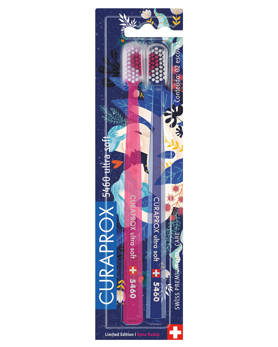 Швейцарская компания Curaprox представляет лимитированную версию своей легендарной зубной щетки Curaprox 5460 c запатентованной щетиной Curen®, анатомически правильной ручкой и количеством щетинок, в 10 раз превосходящих любую другую щётку! Щетина CUREN® изготовлена из полиэстра, в отличие от обычных зубных щеток, которые сделаны полностью из нейлона. Водопоглощаемость полиэстра в шесть раз ниже, поэтому даже во влажном состоянии щетинки CUREN® сохраняют первоначальную упругость и пластичность. Жесткие, толстые щетинки обычных зубных щёток не позволяют удалить зубной налёт из десневой бороздки, не прилагая чрезмерного давления. Когда же мы говорим о зубной щётке Curaprox, достаточно легких круговых движений по линии десны, чтобы удалить налет без повреждений. Компактная головка щетки позволяет очистить всю поверхность зубов и легко проникнуть в труднодоступные места! Набор зубных щеток ultrasoft, d 0,10 мм (2 шт.) Duo Love 2018