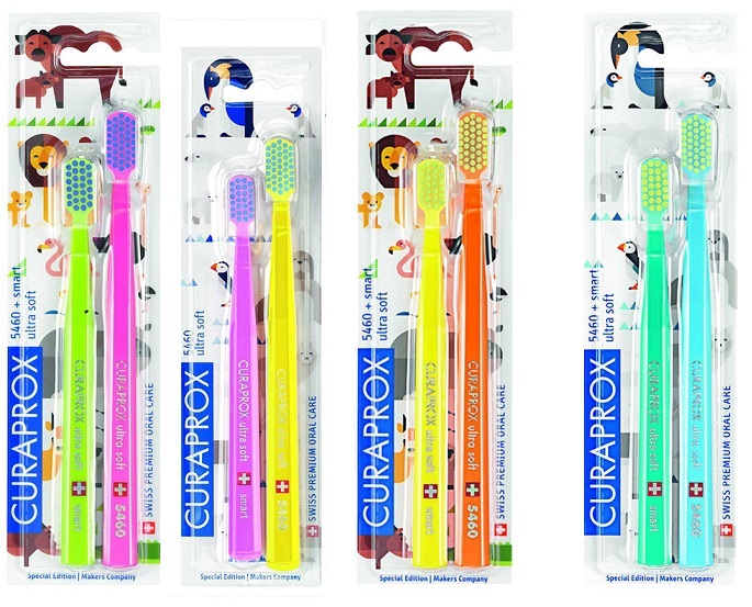 Лимитированный набор Энимал из двух ультра мягких зубных щеток CS5460 Ultra Soft и СS Smart для детей и родителей. Запатентованная щетина CUREN создает необыкновенно густую и эффективную чистящую поверхность. Щетинки CUREN плотнее, чем нейлон, меньше впитывают влагу и на 60% больше сохраняют свои очищающие свойства. Бережно очищают поверхность эмали, более тщательно разрушают и удаляют зубной налет, особенно в зоне десневой борозды. Маленькая и компактная головка зубной щетки, имеющая легкий наклон, обеспечивает правильное положение щетки в пришеечной зоне. Восьмигранная ручка из легкого полипропилена помогает чистить зубы под правильным углом. Щетки содержат 5460 и 7600 щетинок. Набор для родителей и детей. Произведена в Швейцарии.
