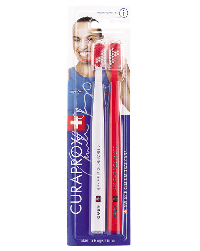 Набор зубных щёток 2шт Martina Hingis "ultrasoft", d 0,10 мм, набор - красная и белая, Curaprox