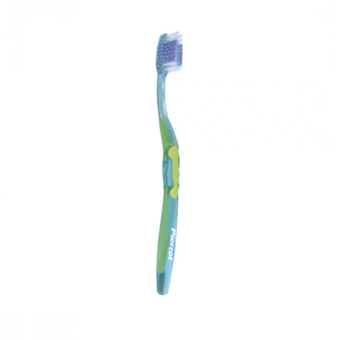 Зубные щетки Pierrot на протяжении многих лет являются образцом гармонии дизайна, качества и функциональности. Классический дизайн этих щёток на протяжении длительного времени практически не меняется, потому что он продолжает оставаться непревзойденным. Вместе с этим меняется уровень функциональности, внедряются новые технологии и материалы, обеспечивающие высочайший уровень качества всей линейки щёток Pierrot. Щетки Pierrot Oxygen – одни из наиболее востребованных сегодня на рынке, спрос на них продолжает расти благодаря тому, что в эта модель вместила в себя все достижения и последние разработки компании Fushima. Компактная головка щетки разработана для лучшего доступа ко всем участкам ротовой полости, для более тщательной чистки. Деликатная и мягкая чистка достигается за счет формы и структуры щетинок.Они закруглены и бережно защищают десна и эмаль зубов. Ровный контур щетин позволяет очищать всю поверхность зубов.