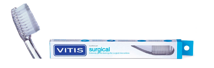 Зубная щетка VITIS® Surgical, экстра мягкая. Для гигиены полости рта в первые 15 дней после проведения хирургического лечения, в т.ч. после установки имплантов. Стандартная длина головки 2,7 см. Цвета: прозрачный.