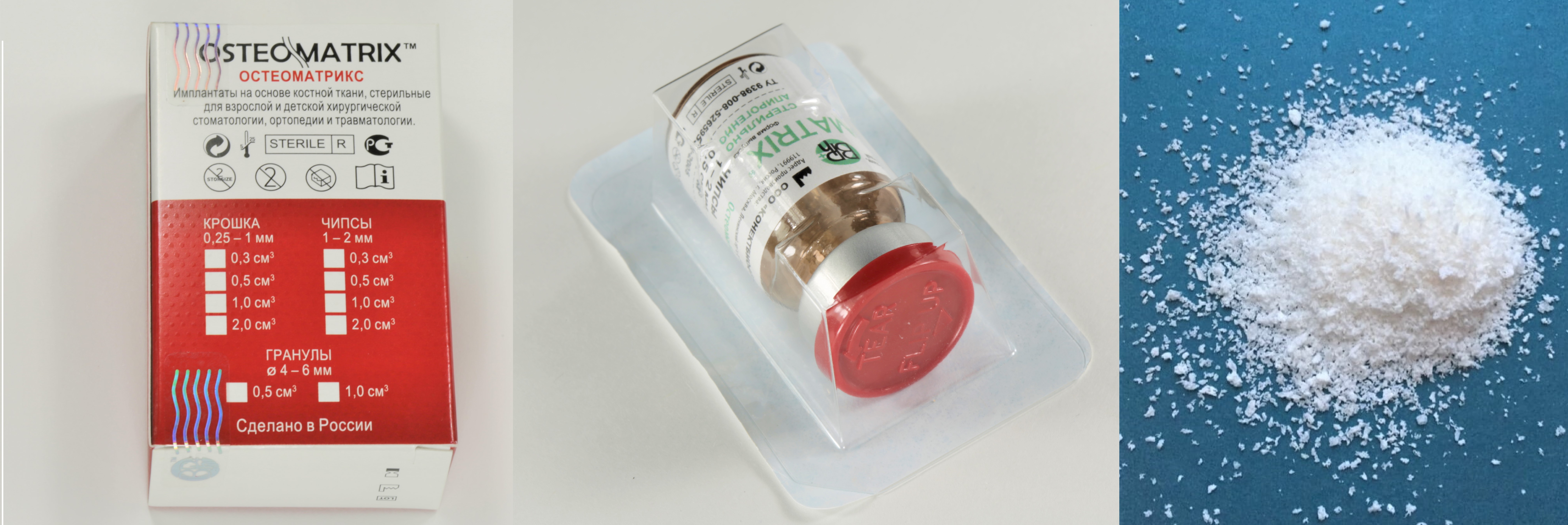 Остеоматрикс крошка (размер частиц ~0,25-1,0 мм) – это биокомпозиционный материал – высокоочищенный костный матрикс с сохраненными коллагеновым и минеральным компонентами и природной архитектоникой, аффинно-связанных костных сГАГ не менее 1,5 мг/см3.