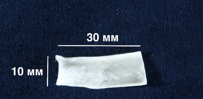 Биоматрикс™ мембрана жесткая 10х30мм (пластина) – представляет собой декальцинированный фрагмент компактного слоя кости, толщиной не более 2-х миллиметров. Выпускается в размерах 10х30мм. В смоченном виде, легко поддающийся контурированию хирургическими ножницами. Смачивание происходит в течение 4-8 минут. Срок резорбции пластины около 4-х месяцев, Что позволяет спокойно сформироваться костной ткани, надежно защищая аугментат от механических воздействий.