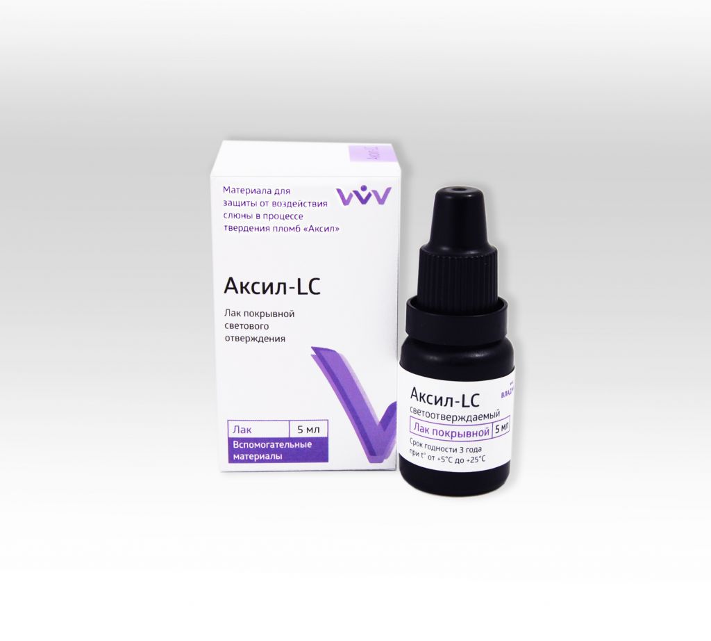 «Аксил»-LC обладает хорошей адгезией к пломбировочным материалам, быстро отверждается под действием света фотополимеризатора и образует тонкую пленку, которая надежно защищает стеклоиономер или композит от воздействия влаги в процессе отверждения (не менее 24 часов).