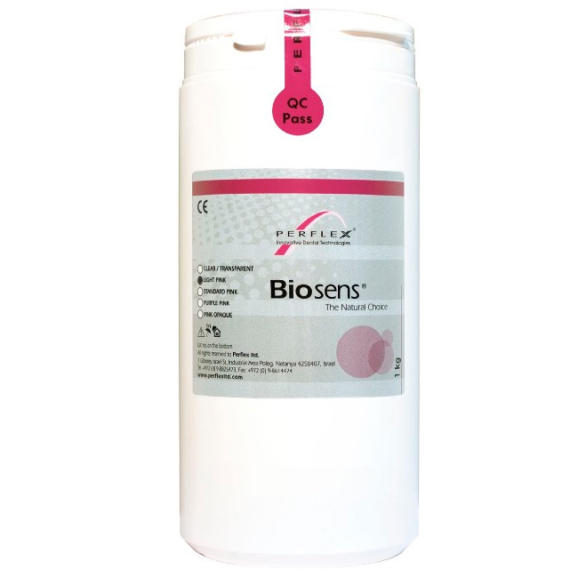 Perflex Biosense термопластичный биосовместимый, безмономерный материал с умеренной степенью гибкости. Он предназначен для всех видов съёмных зубных протезов, при этом он обрабатывается и полируется также легко, как акриловые термопластмассы. В то же время он ничем не уступает по своим свойствам остальным материалам Perflex.